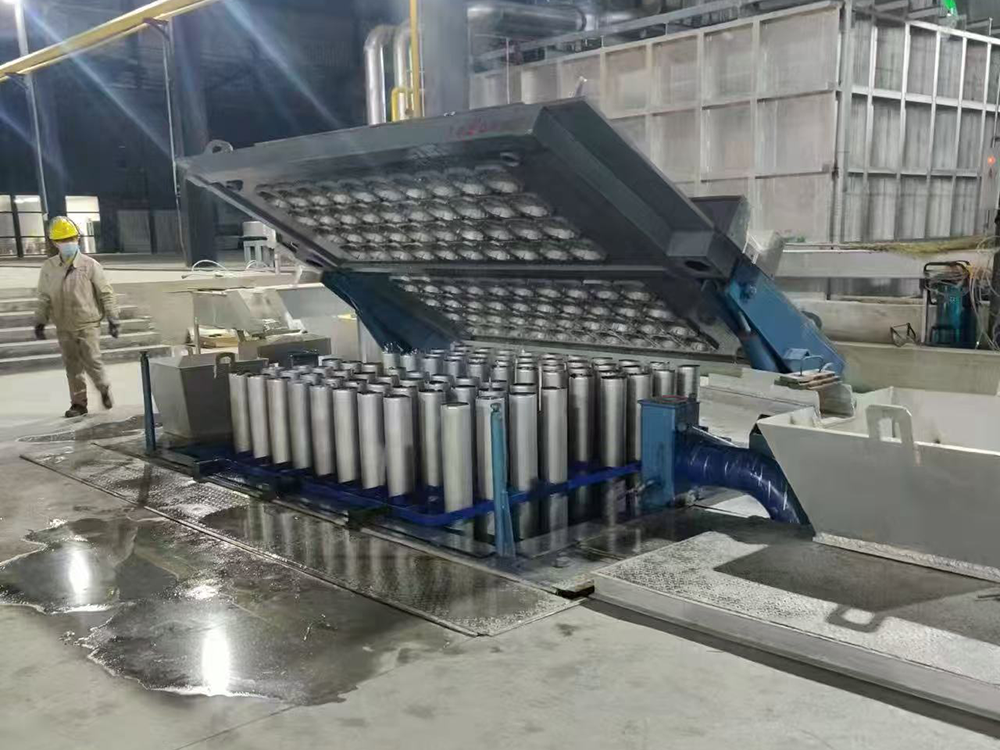 Установка работает стабильно, производит слитки с гладкой поверхностью со всех сторон; используется пневматический механизм извлечения отливок с эффективностью извлечения более 99%.